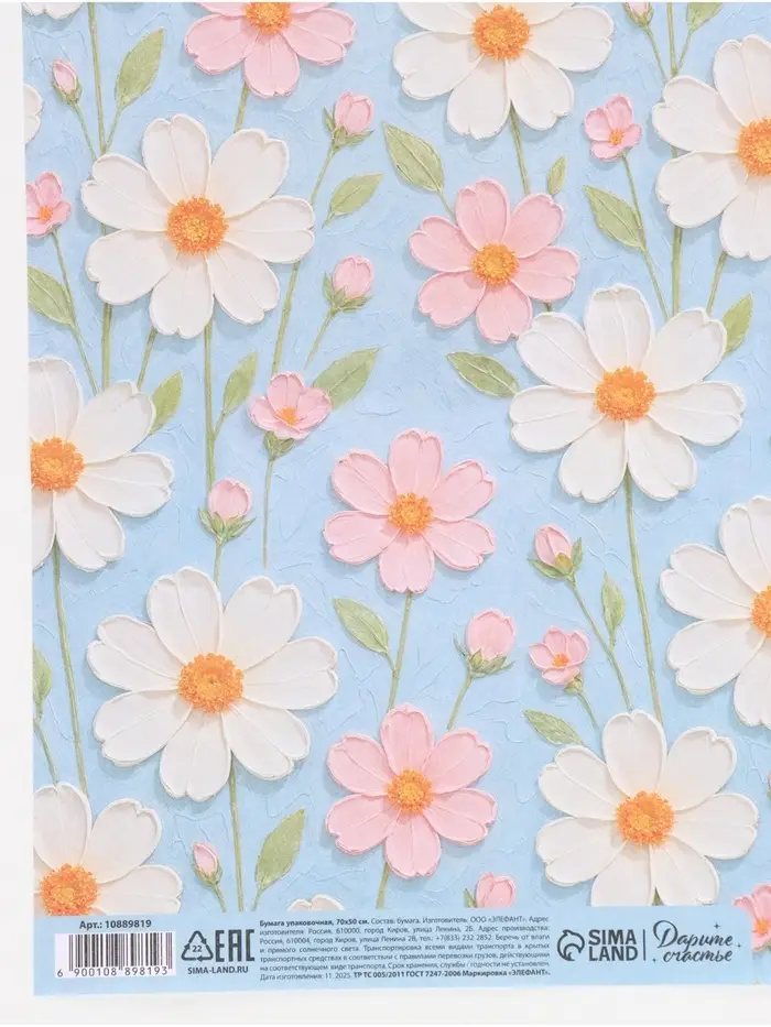 Бумага упаковочная крафтовая «Цветочная», 50 × 70 см