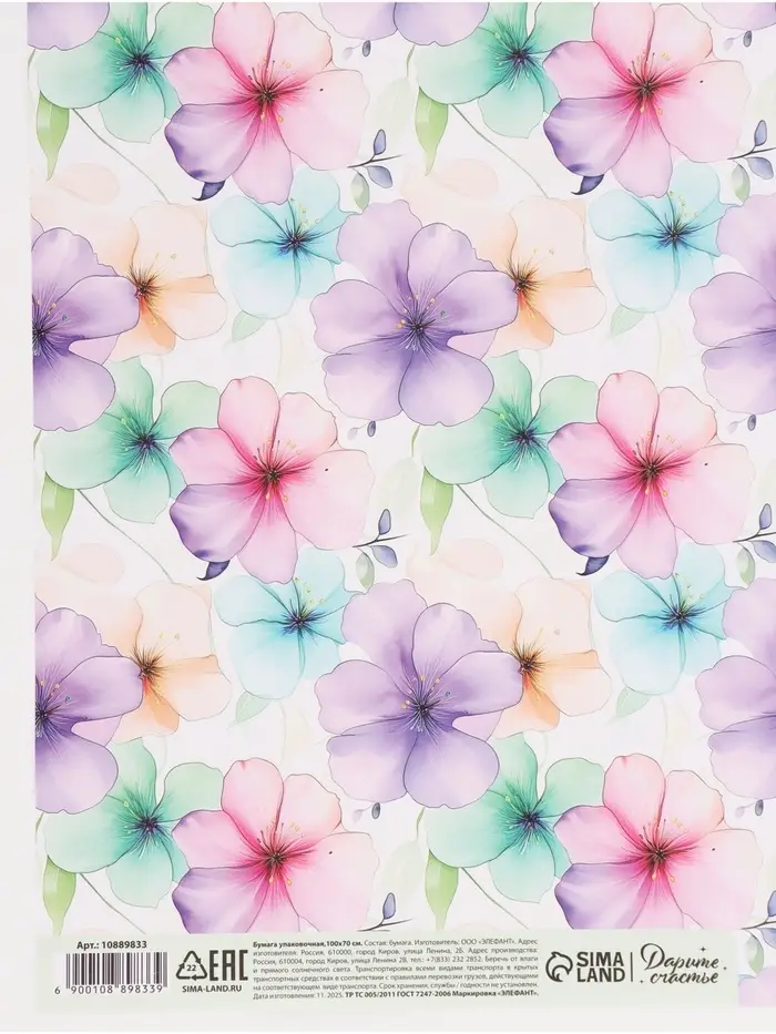 Бумага упаковочная глянцевая «Цветы», 70 × 100 см