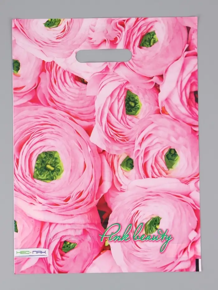 Пакет "Розовый букет, полиэтиленовый с вырубной ручкой 30х40 см, 60 мкм