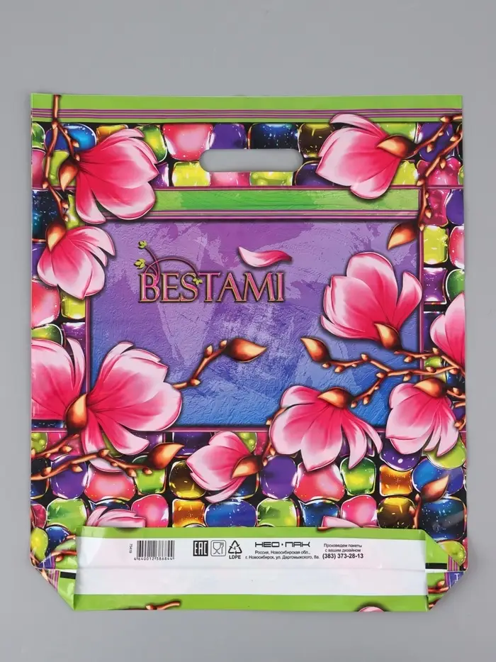 Пакет "Сакура , полиэтиленовый с вырубной ручкой 38х45 см, 60 мкм