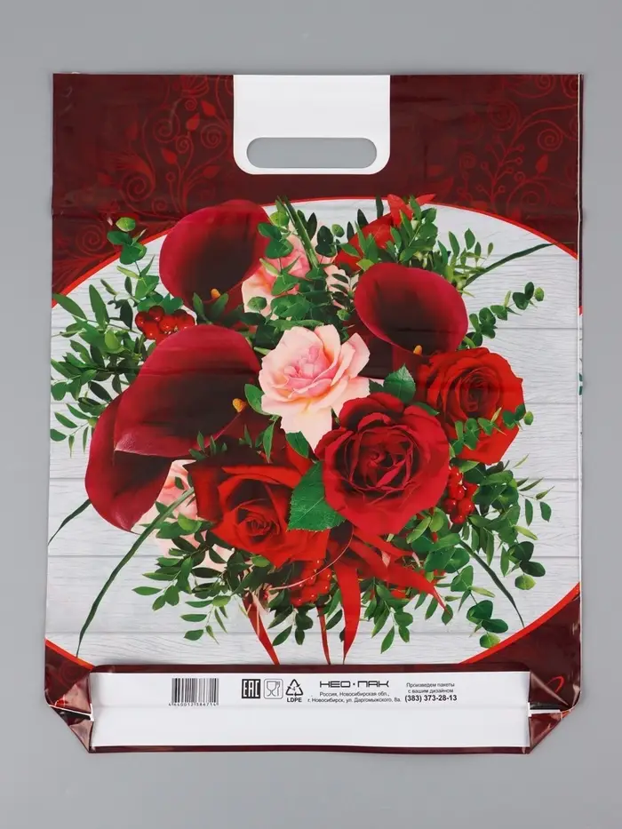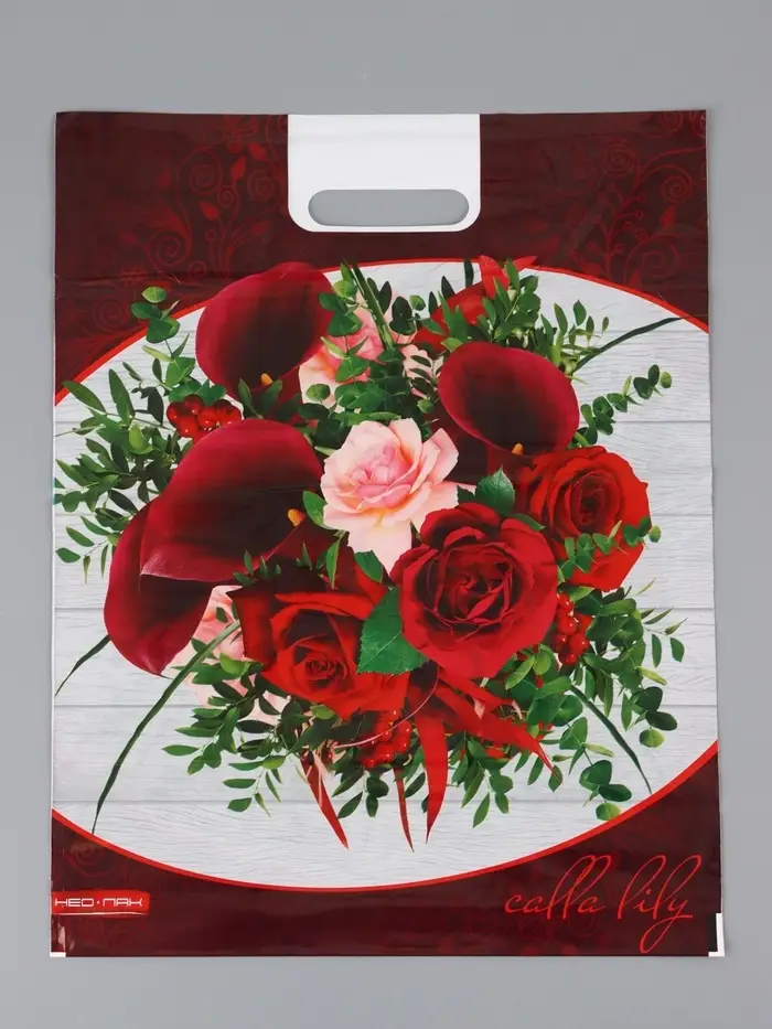 Пакет "Бордовые каллы , полиэтиленовый с вырубной ручкой, 38х47 см, 60 мкм