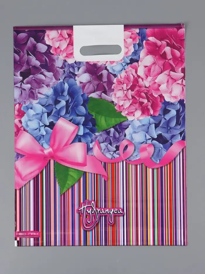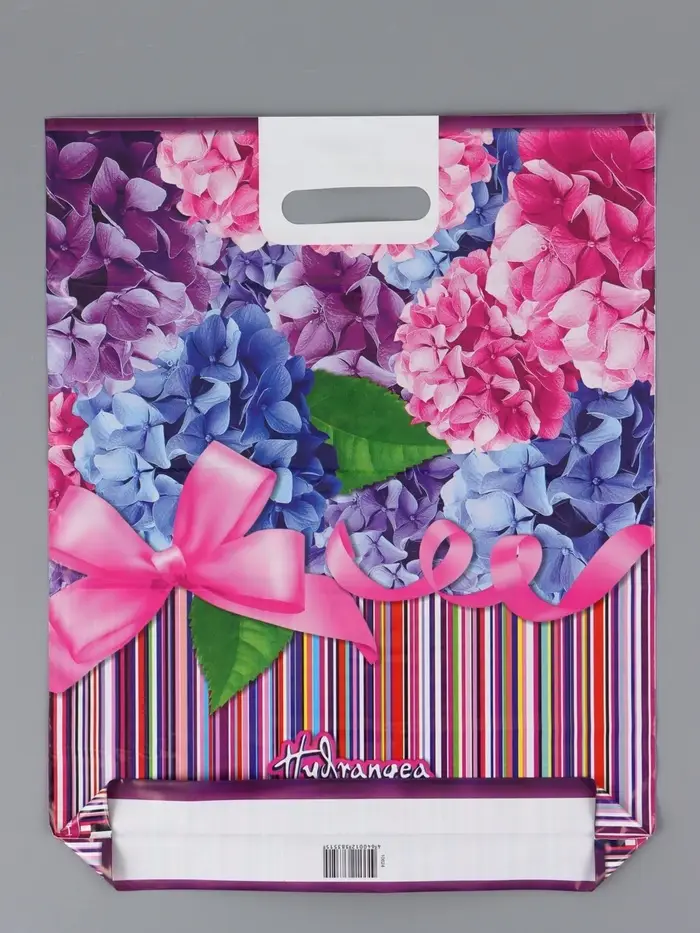 Пакет "Гортензия, полиэтиленовый с вырубной ручкой 38х47 см, 60 мкм