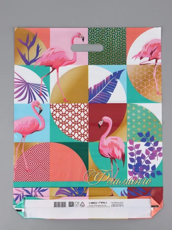 Пакет "Яркий фламинго, полиэтиленовый с вырубной ручкой, 41х51 80 мкм