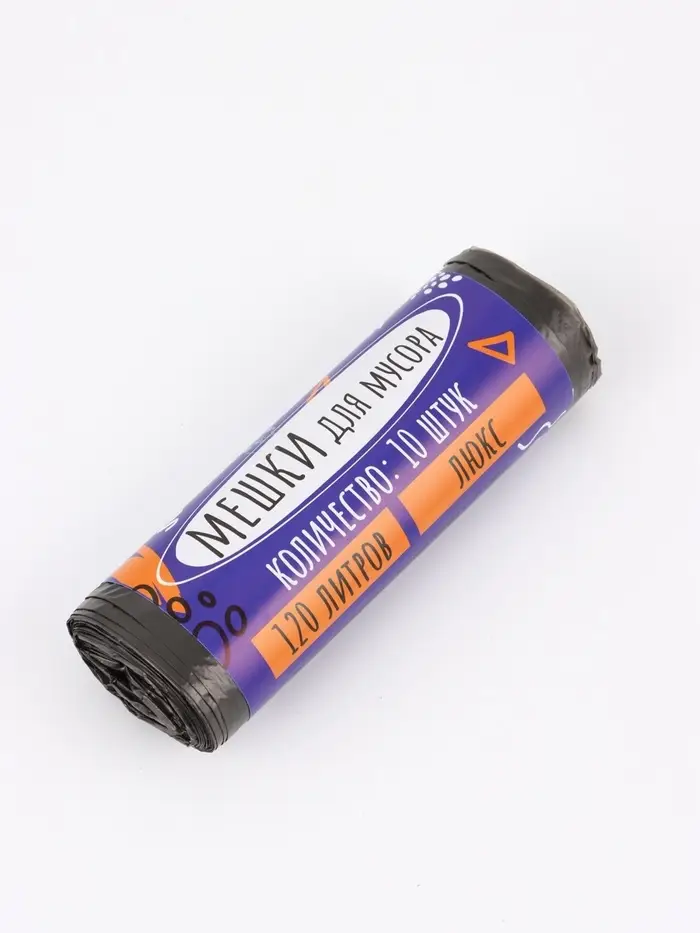 Мешки для мусора 120 л ПНД,толщина 10 мкм, 10 шт в рулоне, цвет черный