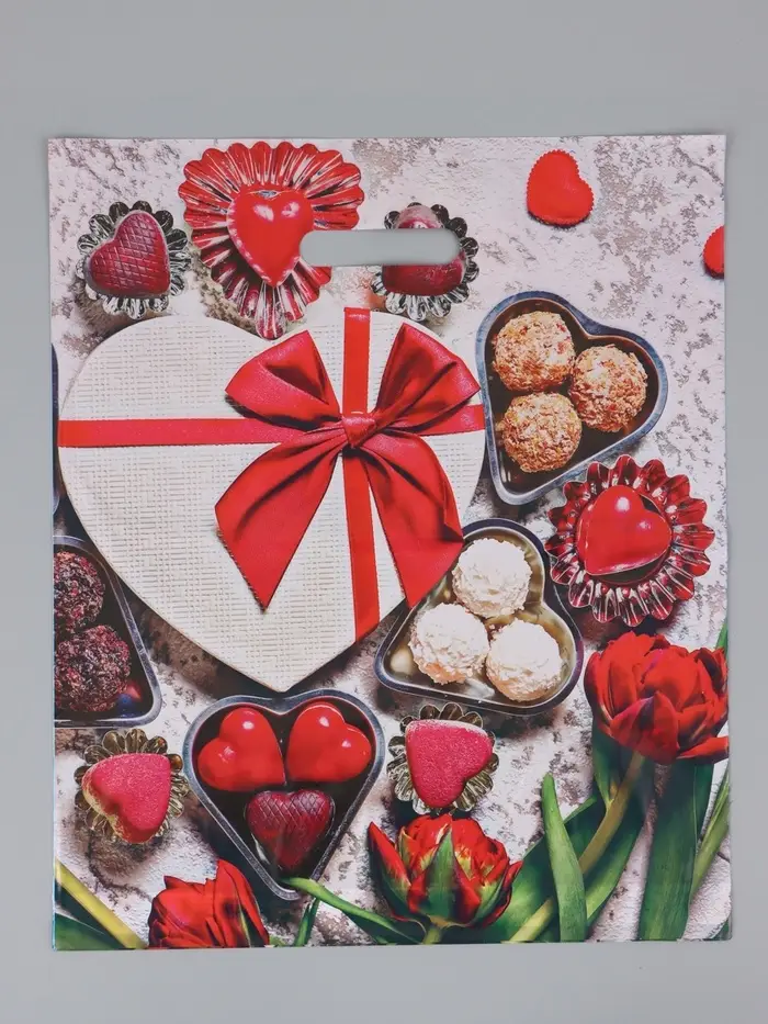 Пакет "Сладкое сердце", полиэтиленовый с вырубной ручкой, 38 х 45 + 3 см, 50 мкм