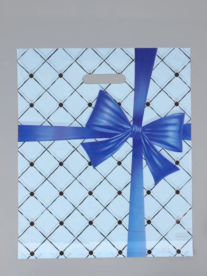 Пакет "Синий бант", полиэтиленовый с вырубной ручкой, 36 х 43 + 3 см, 35 мкм
