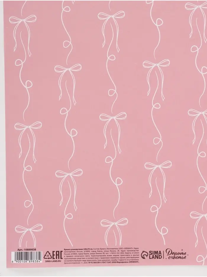 Бумага упаковочная глянцевая «Бантики», 70 × 100 см