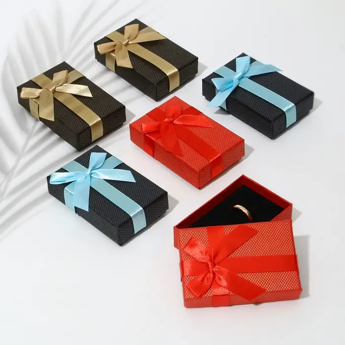 С нашими прекрасными коробочками любой подарок станет еще лучше и ярче. Футляр выполнен из прочного плотного картона. Оптимальный размер коробки 5*8см позволяет разместить разнообразные виды ювелирных изделий – от сережек до колье. Внутри каждой коробочки с крышкой есть чёрная бархатная подложка. С помощью специальных прорезей на подушечке можно аккуратно разместить и зафиксировать цепочки, гвоздики и перстни. А если убрать подложку, упаковка подойдет даже для часов с мягким плоским ремешком или на цепи.