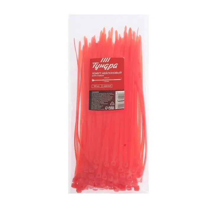 Хомут нейлоновый для стяжки, ТУНДРА, 3,6х200 мм, красный, 100 шт