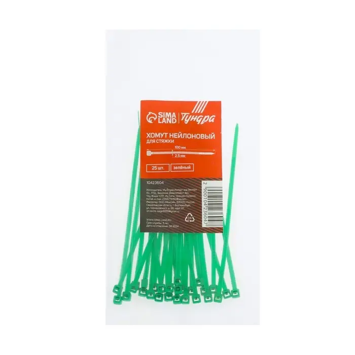 Хомут нейлоновый для стяжки, ТУНДРА, 2.5×100 мм, зеленый, 25 шт.
