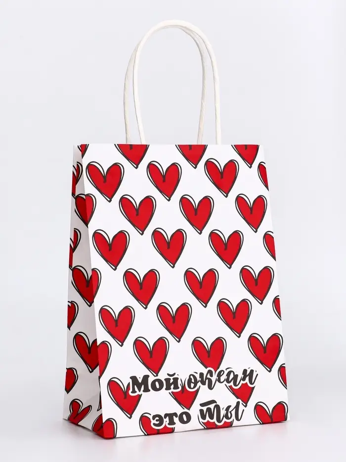 Этот подарочный пакет из крафт-бумаги с милыми сердечками станет идеальным выбором для упаковки подарков на День святого Валентина (14 февраля) и Международный женский день (8 марта).