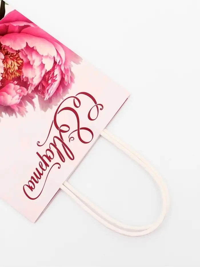 Этот пакет крафт на 8 Марта создан специально для того, чтобы сделать ваш подарок девушке ещё более особенным. Плотность бумаги 120 г/м² гарантирует прочность и надёжность пакета, позволяя безопасно переносить даже хрупкие и ценные вещи.