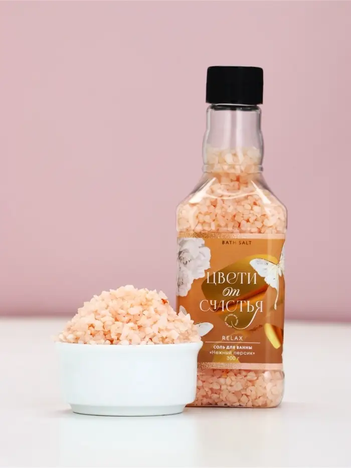 Соль для ванны во флаконе виски «Цвети от счастья», 300 гр, аромат нежный персик, Чистое счастье