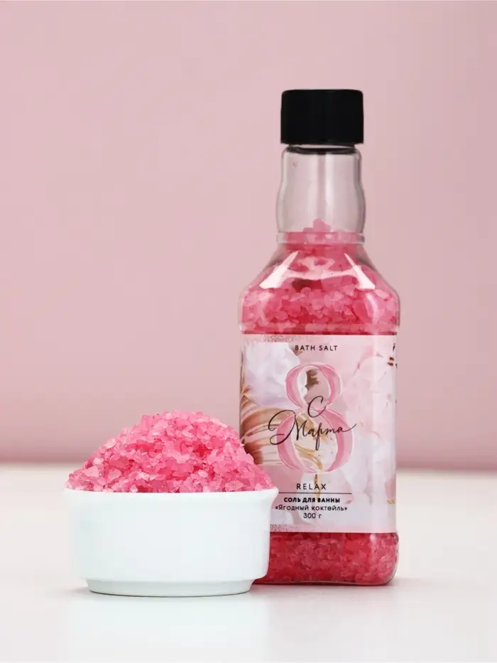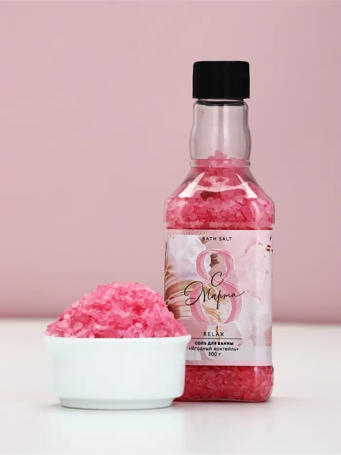 Соль для ванны во флаконе виски «8 марта», 300 гр, аромат ягодный коктейль, Чистое счастье