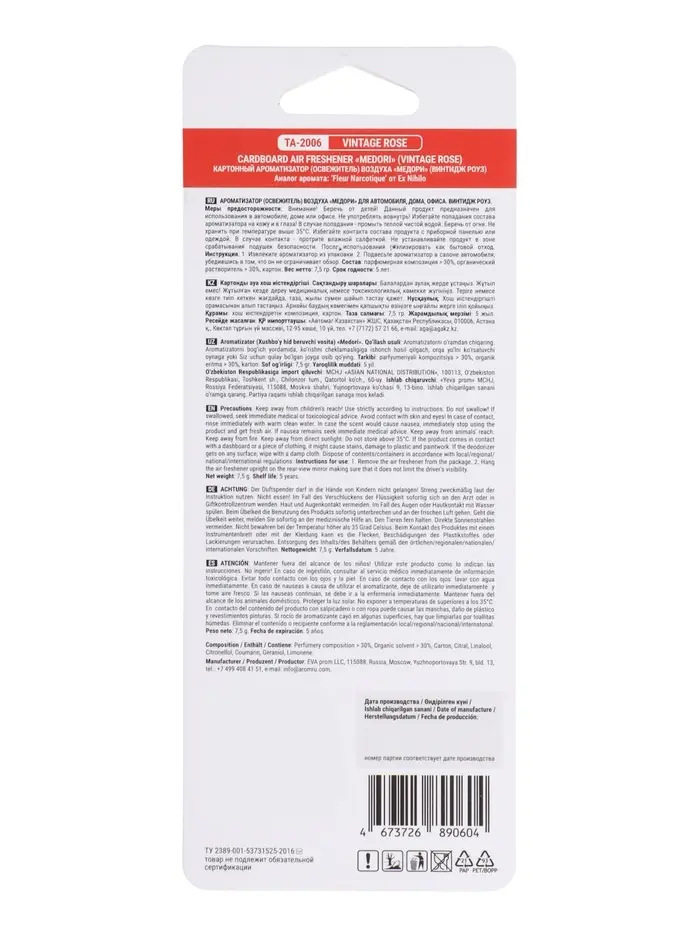 Ароматизатор картонный Vintage rose, Fleur Narcotique