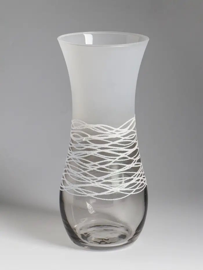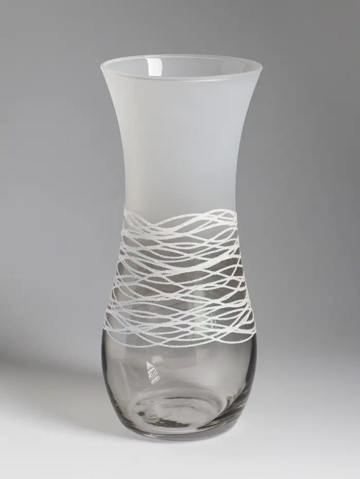 - Игра прозрачного и дымчатого стекла: Ваза выполнена из качественного стекла с градиентным напылением. От прозрачного основания к дымчатому верху — этот переход создает эффект лёгкой туманности, смягчая и рассеивая свет.