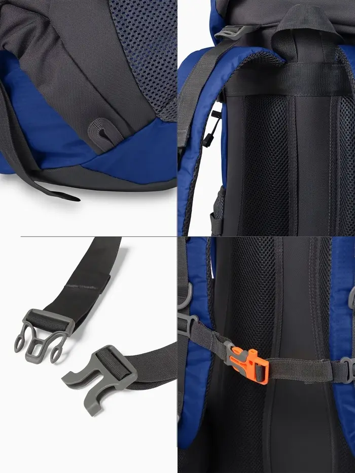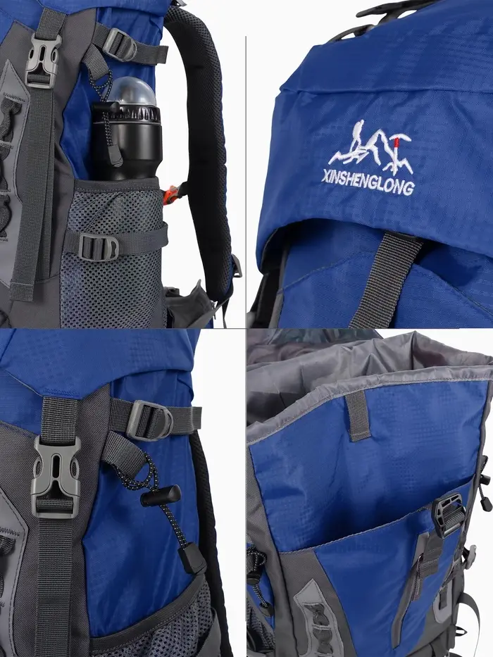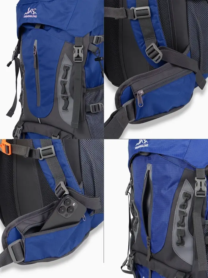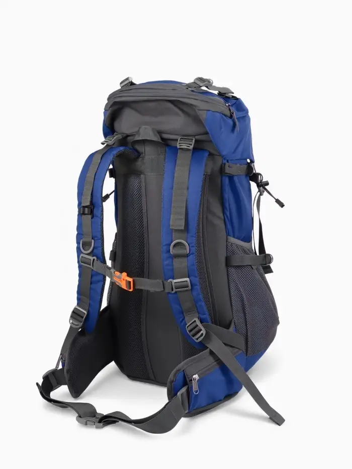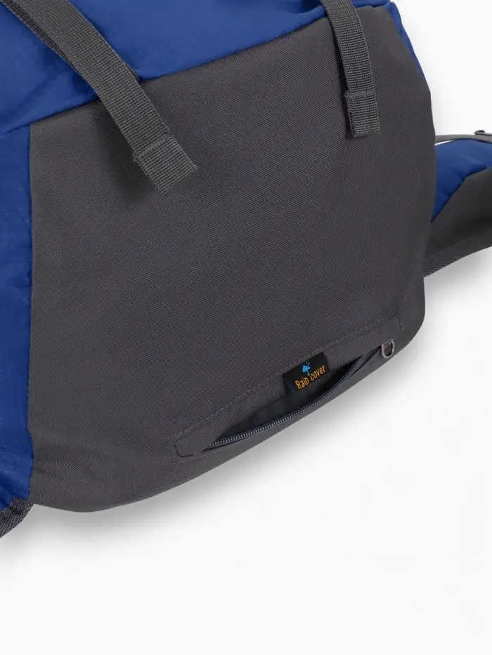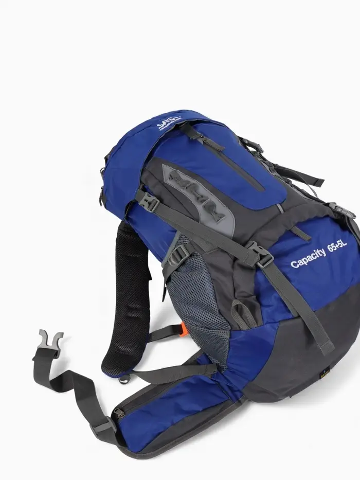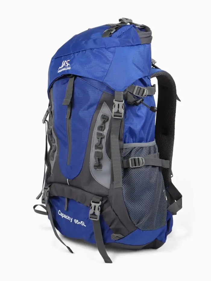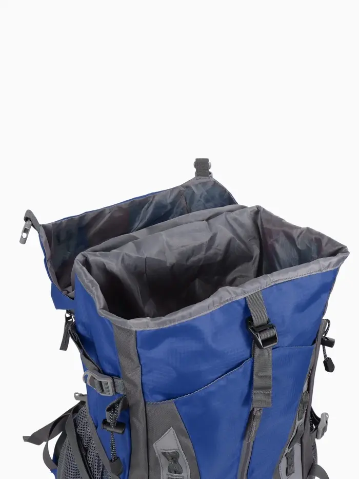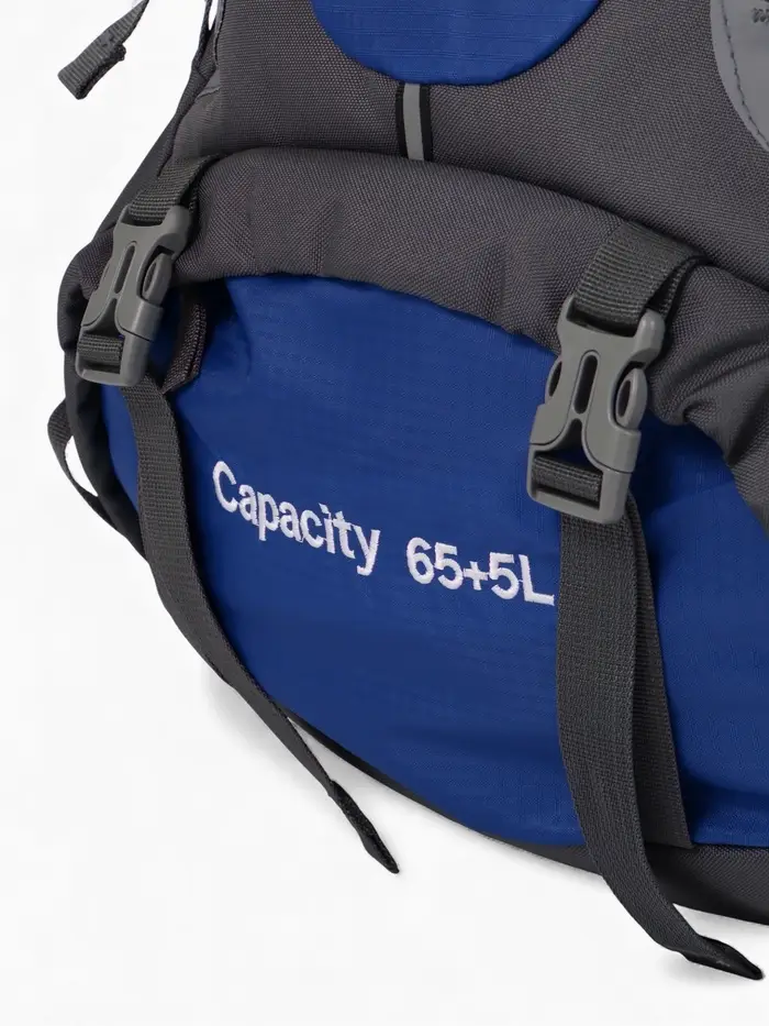 Рюкзак тур 65+5л, 30*20*53, отдел на шнурке, 5нар+2вн кармана, цвет синий