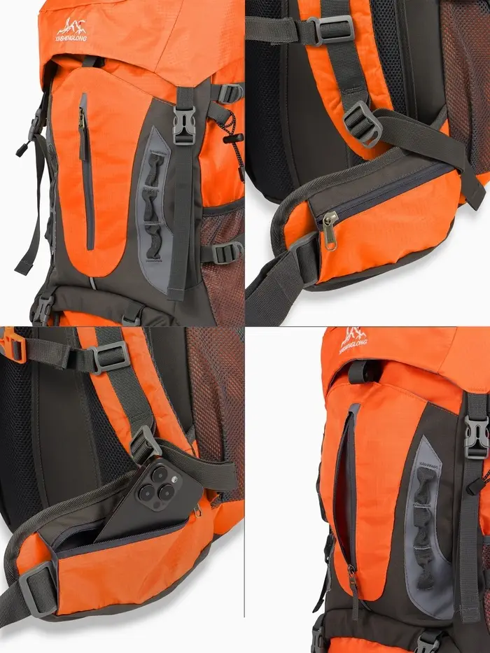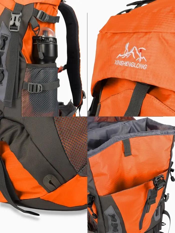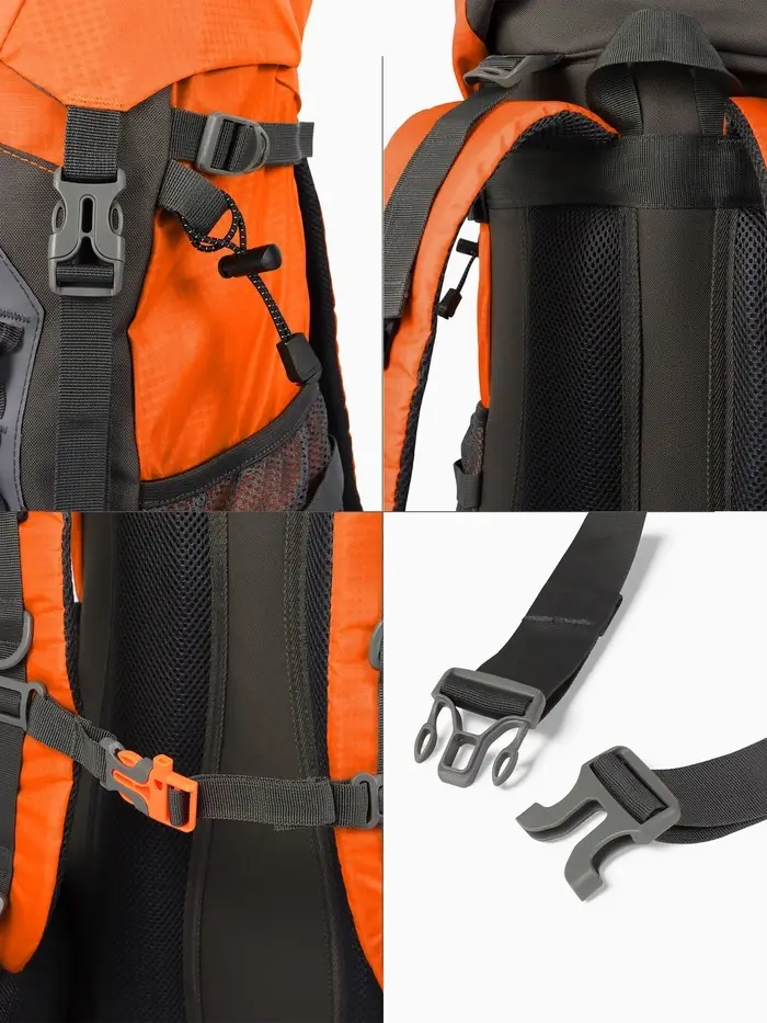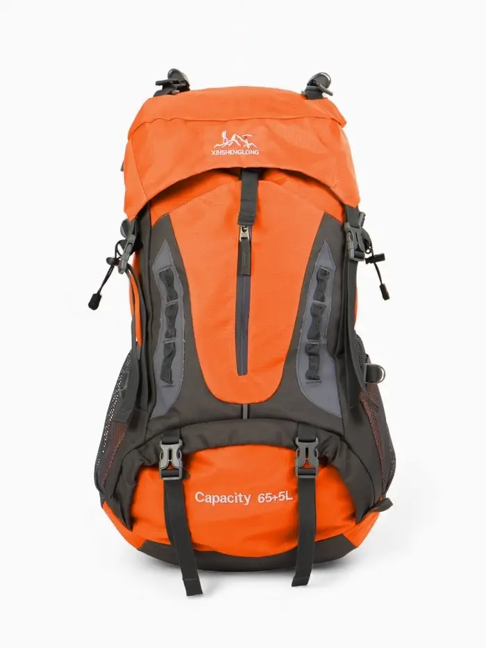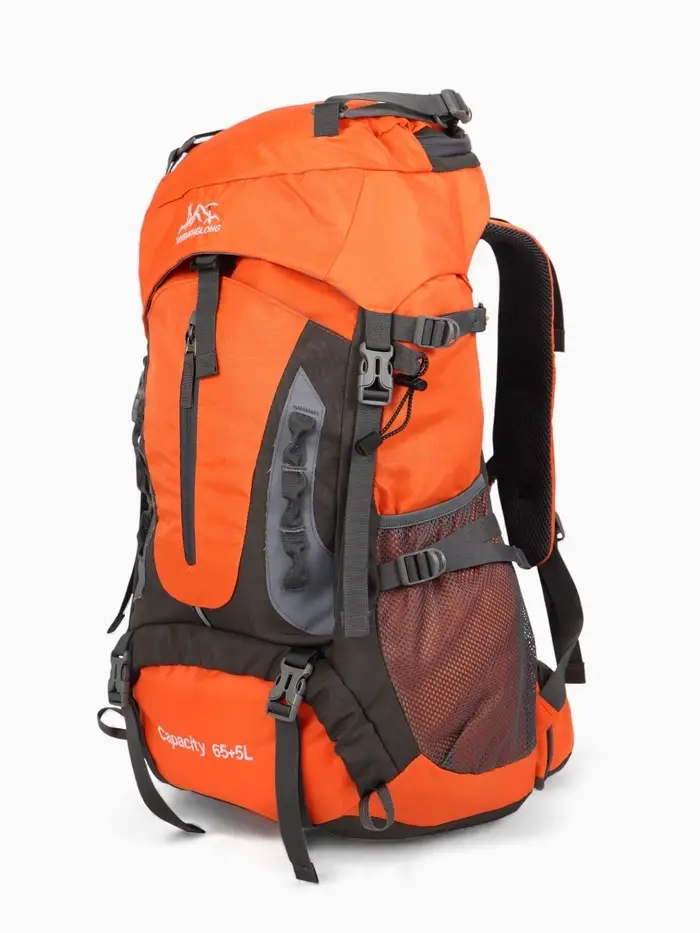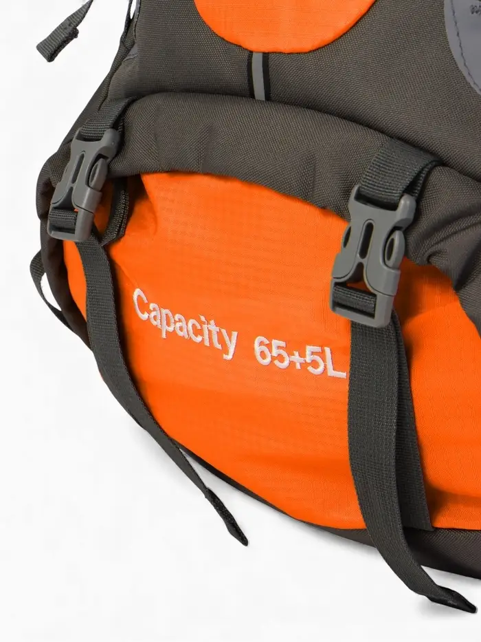 Рюкзак тур 65+5л, 30*20*53, отдел на шнурке, 5нар+2вн кармана, цвет оранжевый