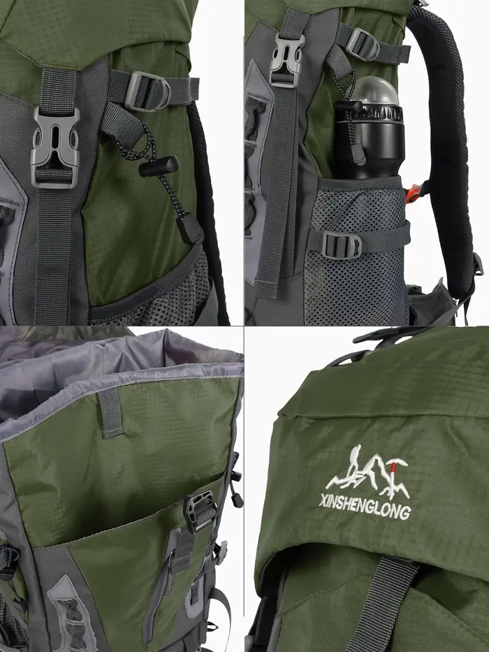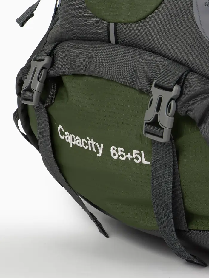Рюкзак тур 65+5л, 30*20*53, отдел на шнурке, 5нар+2вн кармана, цвет хаки