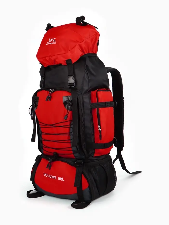 Рюкзак тур 90л, 33*22*65, отдел на шнурке, 6 нар карманов, цвет красный