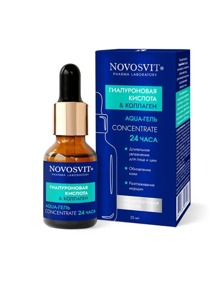 Аква-гель 24 часа NOVOSVIT гиалуроновая кислота и коллаген, 100 мл