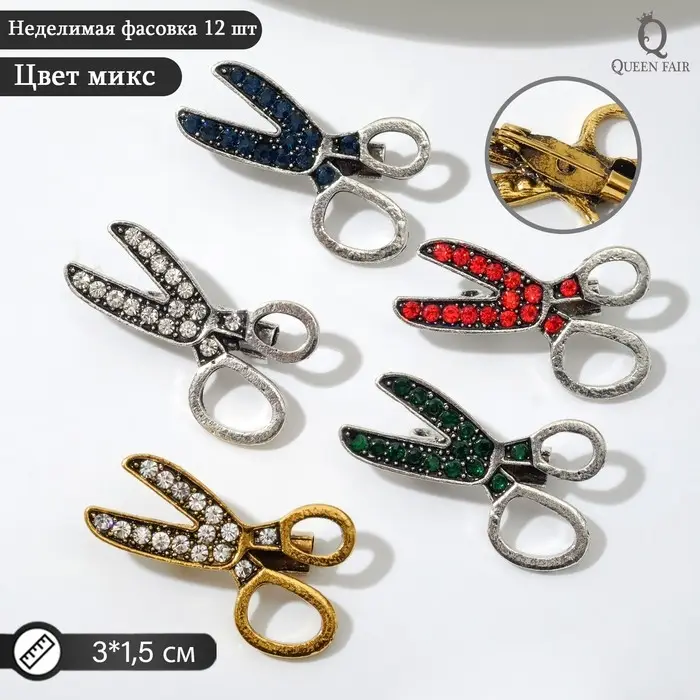 Брошь «Ножницы», цвет МИКС (неделимая фасовка 12 шт., цена за шт.)