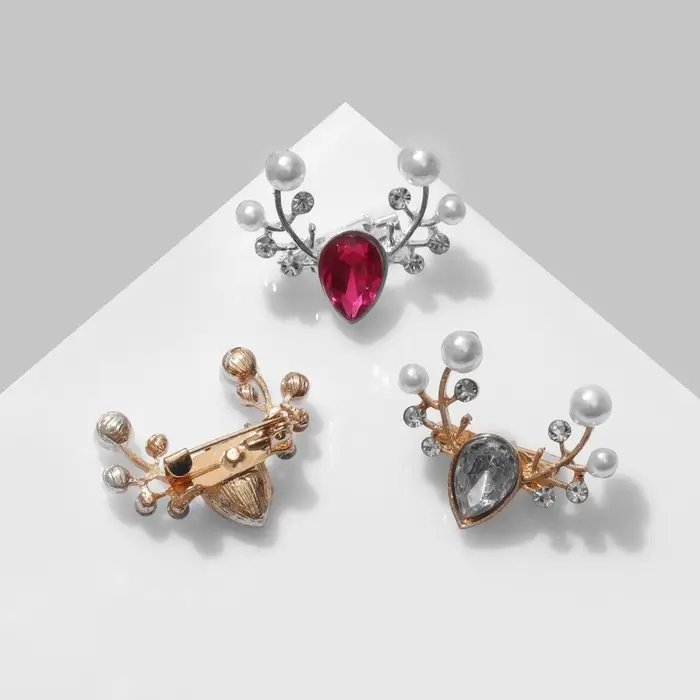 Брошь «Олень» жемчужные рога (неделимая фасовка 12 шт., цена за шт.), цвет МИКС