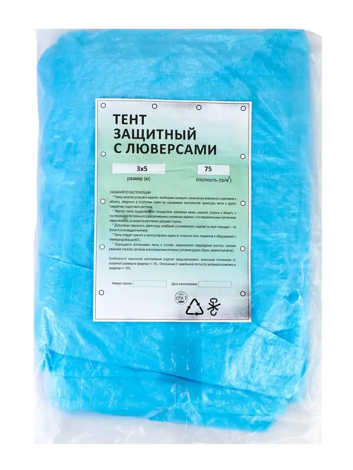 Тент защитный 75г/м2, УФ, 3х5м, тарпаулин, голубой
