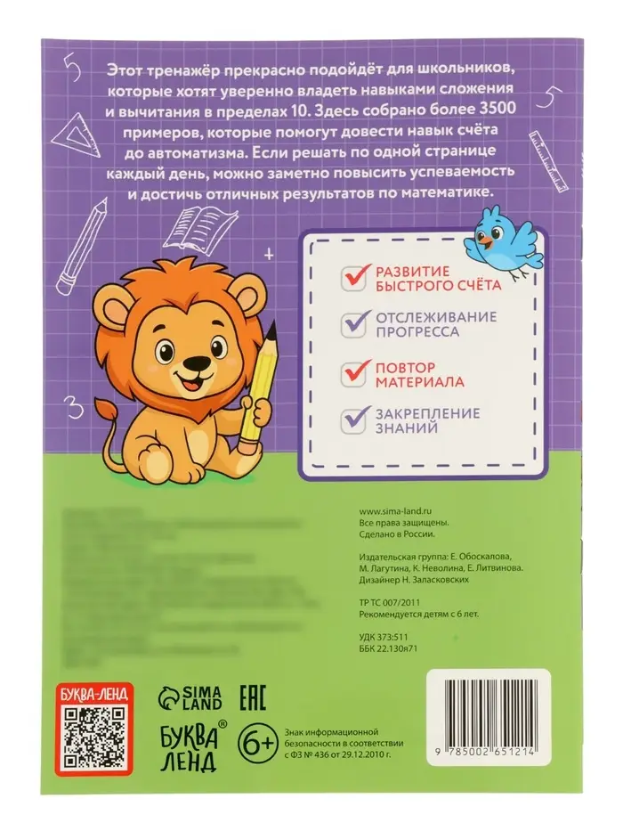 Тренажёр по математике "3500 примеров по математике. Счёт в пределах 10", 24 стр