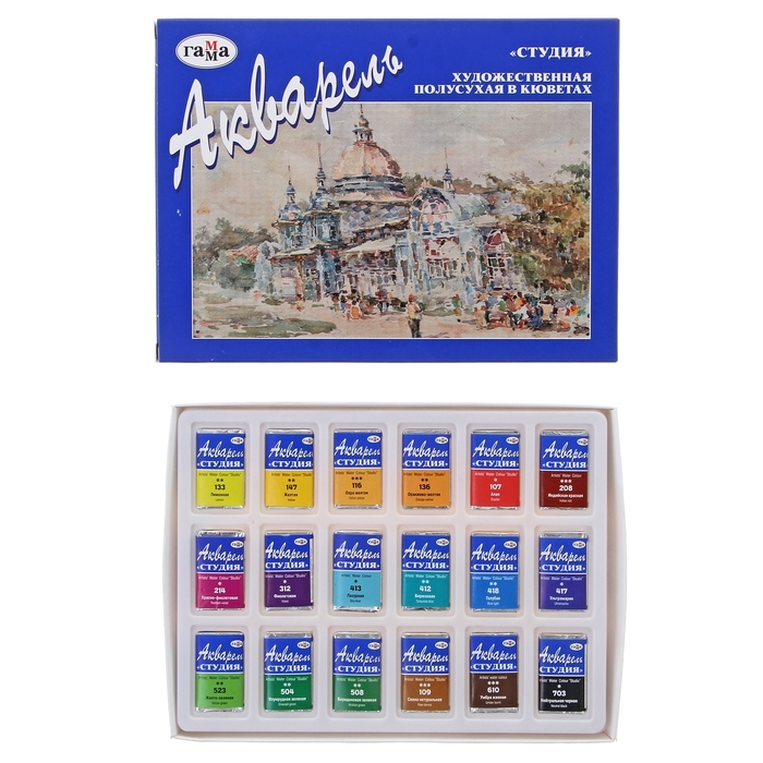 Акварель художественная в кюветах, 18 цветов х 2.5 мл, "Гамма" "Студия", 215003