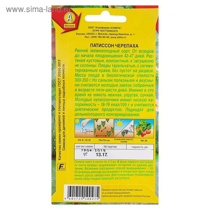 Семена Патиссон "Черепаха", 1 г