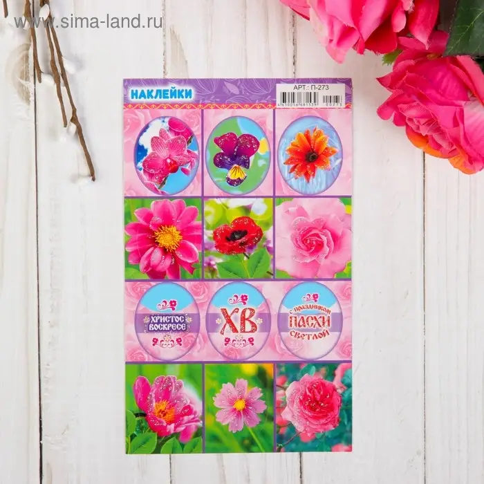 Наклейки пасхальные «Цветы. Розовые» с глиттером