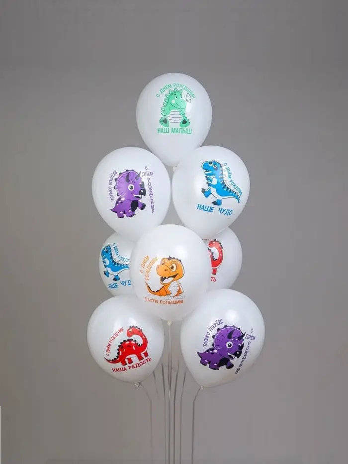 Воздушные шары латексные 12" «С днём рождения наш малыш. Динозаврики», 25 шт.
