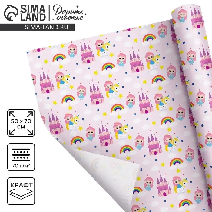 Бумага упаковочная крафтовая белая «Принцесса», 50 x 70 см