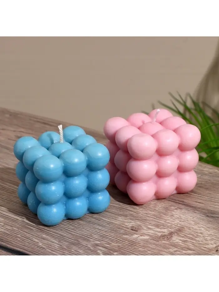 Свеча "Шарики 3 слоя" 6х6х6 см, соевый воск МИКС