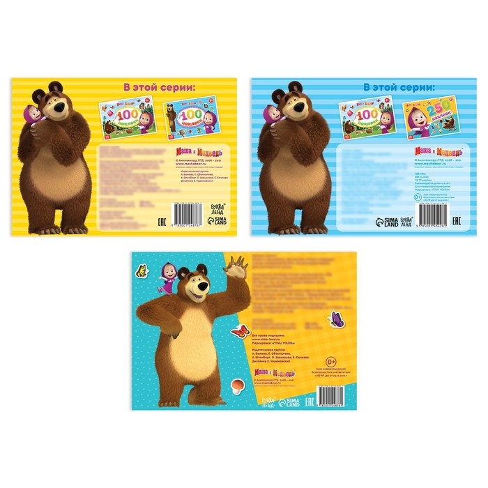Набор альбомов 100 и 250 наклеек «Маша и медведь», 3 шт., Маша и Медведь