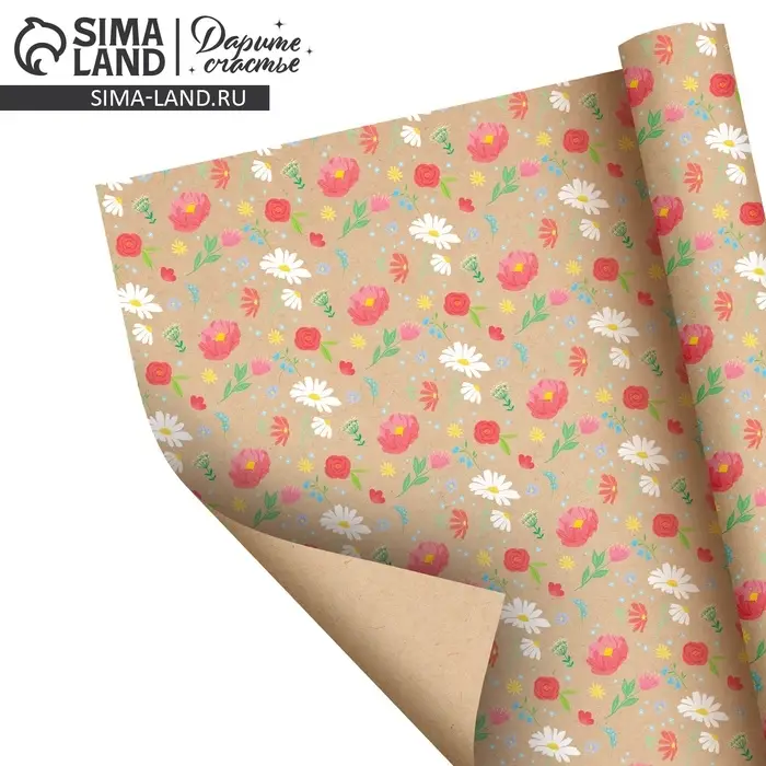 Бумага упаковочная крафтовая «Розовые цветочки», 70 × 100 см