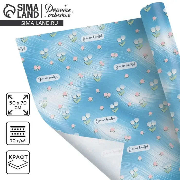 Бумага упаковочная крафтовая You are beautiful, 50 × 70 см