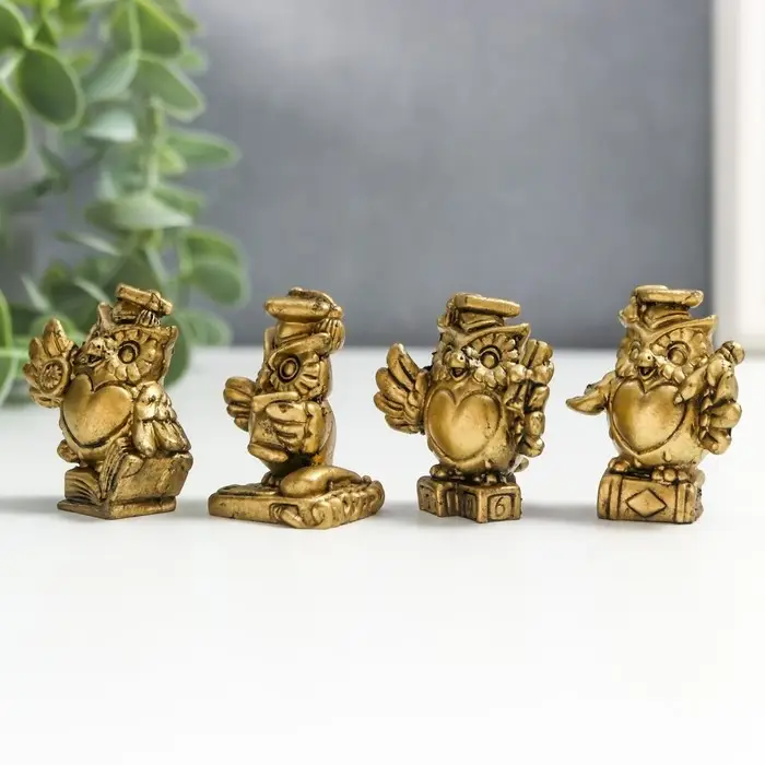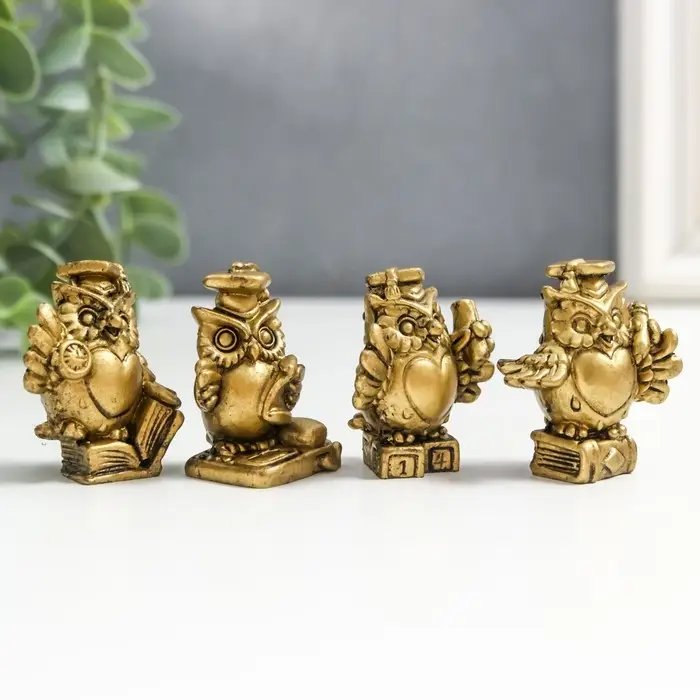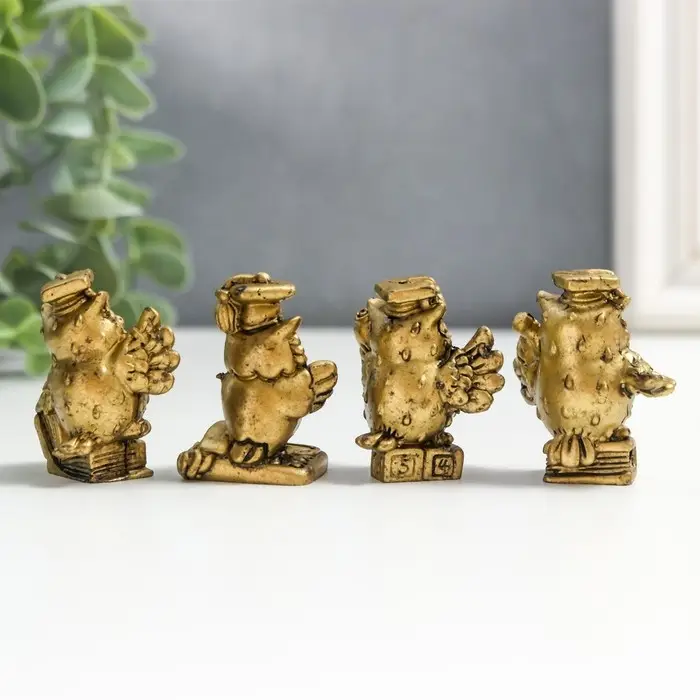Сувенир полистоун под бронзу "Учёные совушки" набор 4 шт 3,8х1,5х3 см
