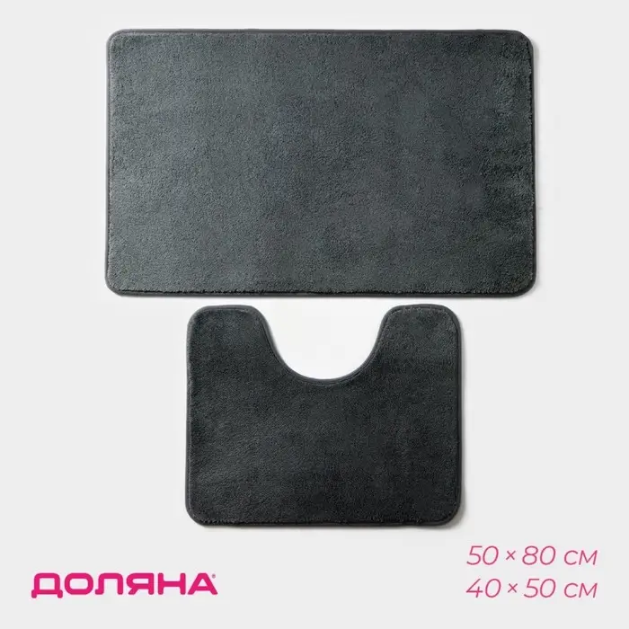 Коврики для ванной и туалета Доляна «Софт», 2 шт: 40×50 см, 50×80 см, цвет серый