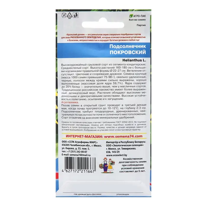Семена Цветов Подсолнечник "Покровский" , 0 ,05 г