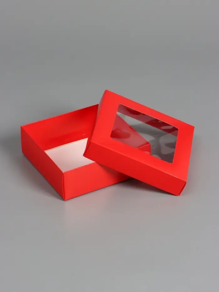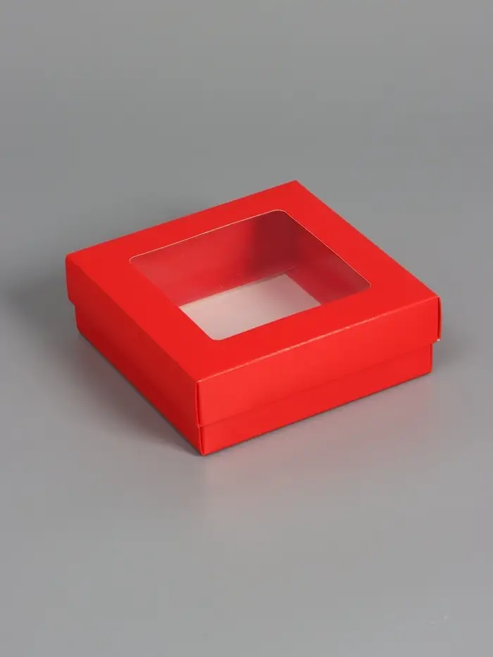 Коробка складная, крышка-дно,с окном, красная, 15 х 15 х 5 см