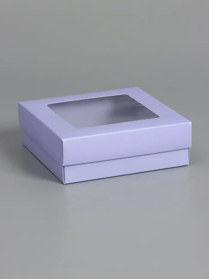 Коробка складная, крышка-дно,с окном, сиреневая, 15 х 15 х 5 см