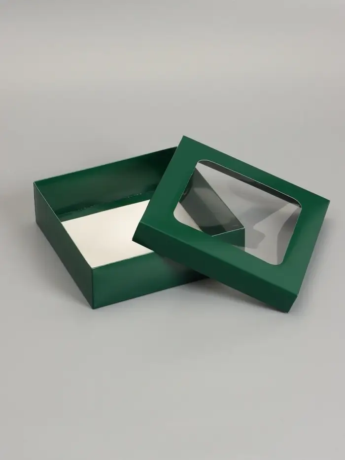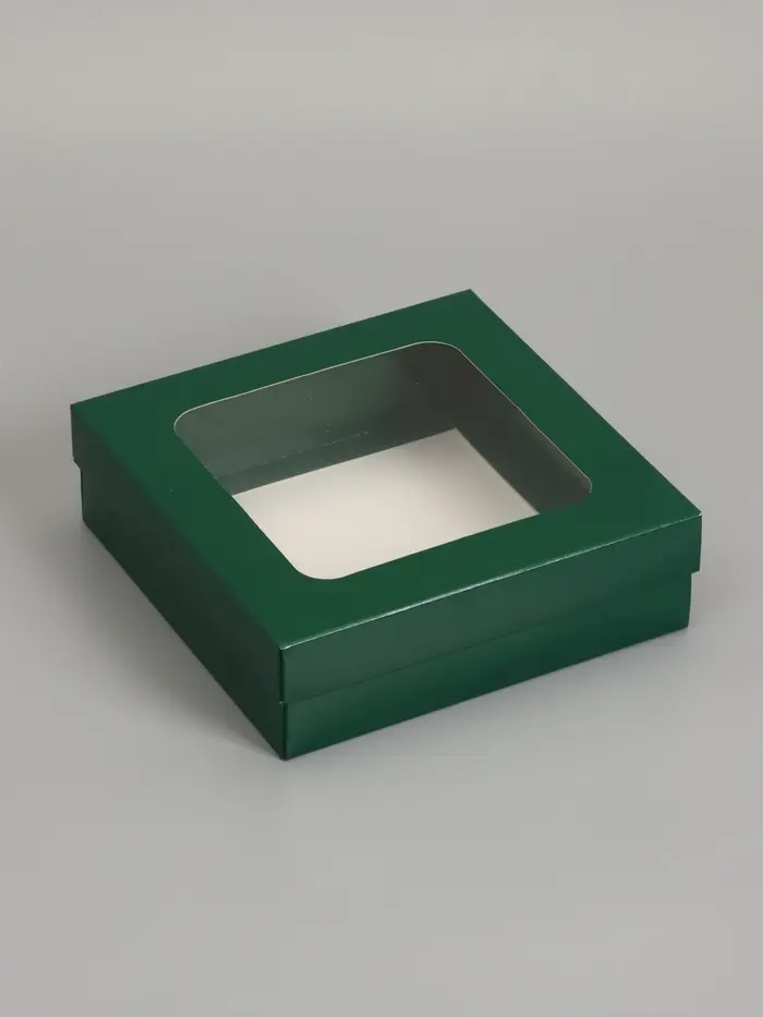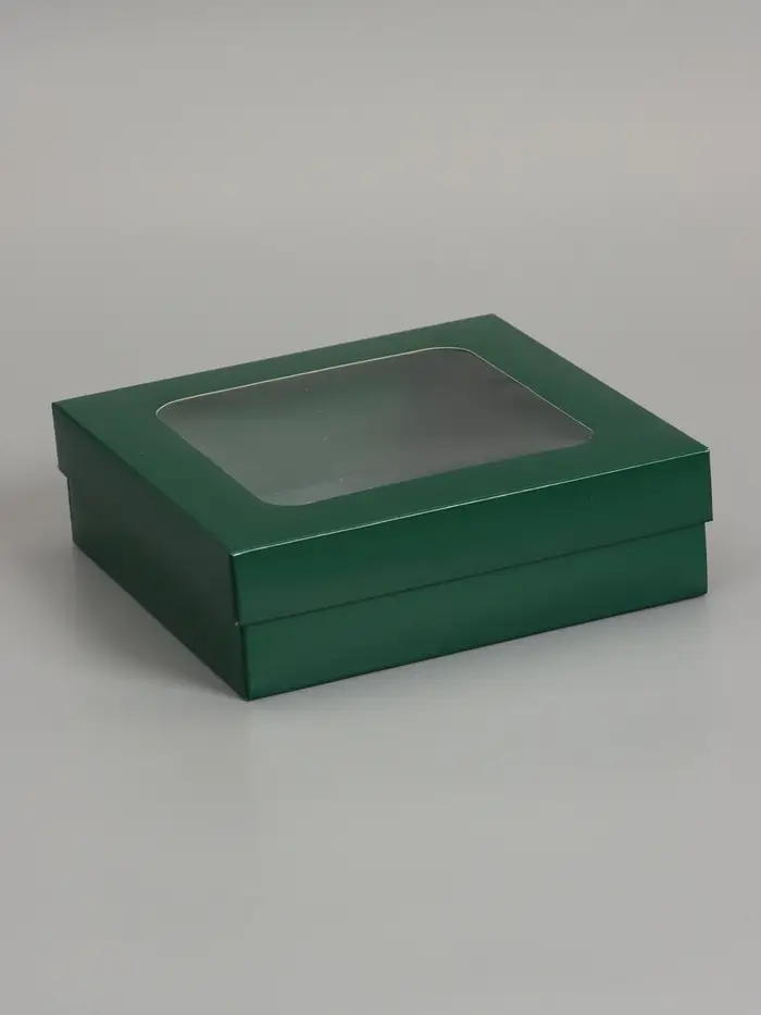 Коробка складная, крышка-дно, армейский зелёный, с окном 20 х 20 х 6 см