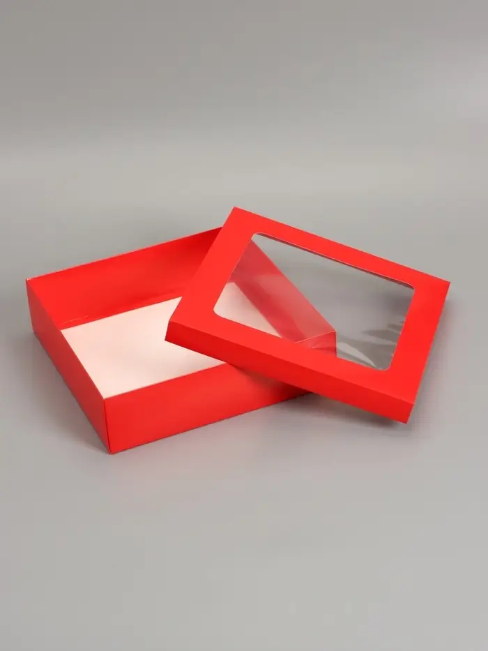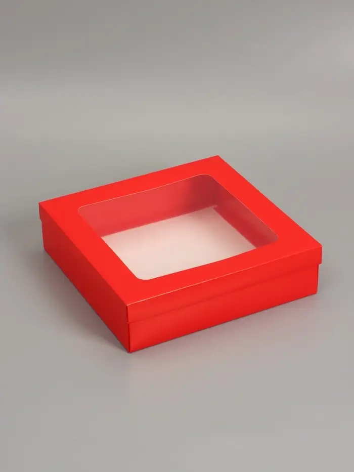 Коробка складная, крышка-дно, красная, с окном 30 х 30 х 8 см