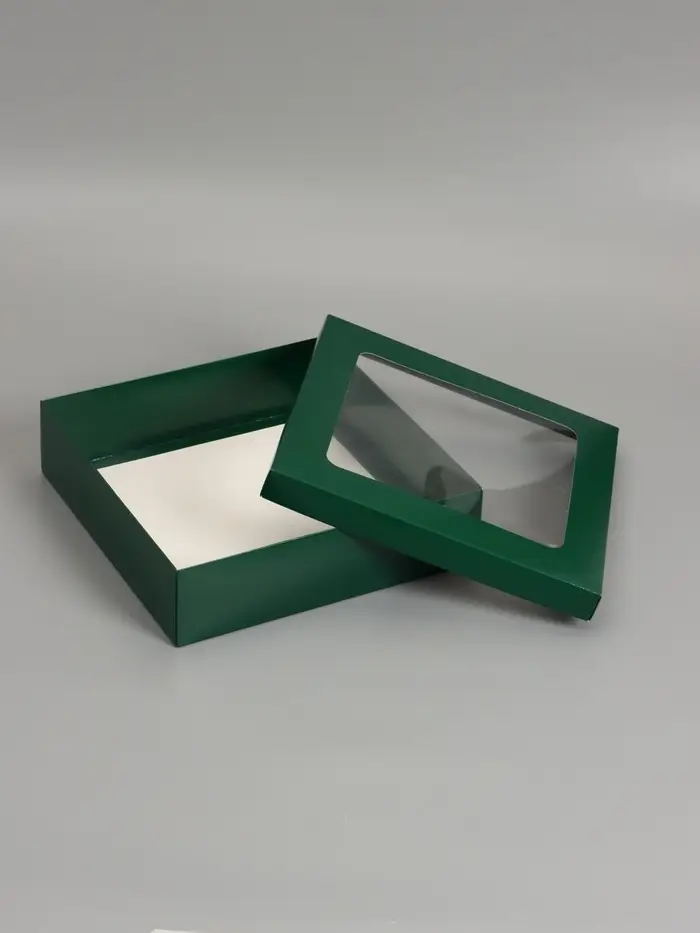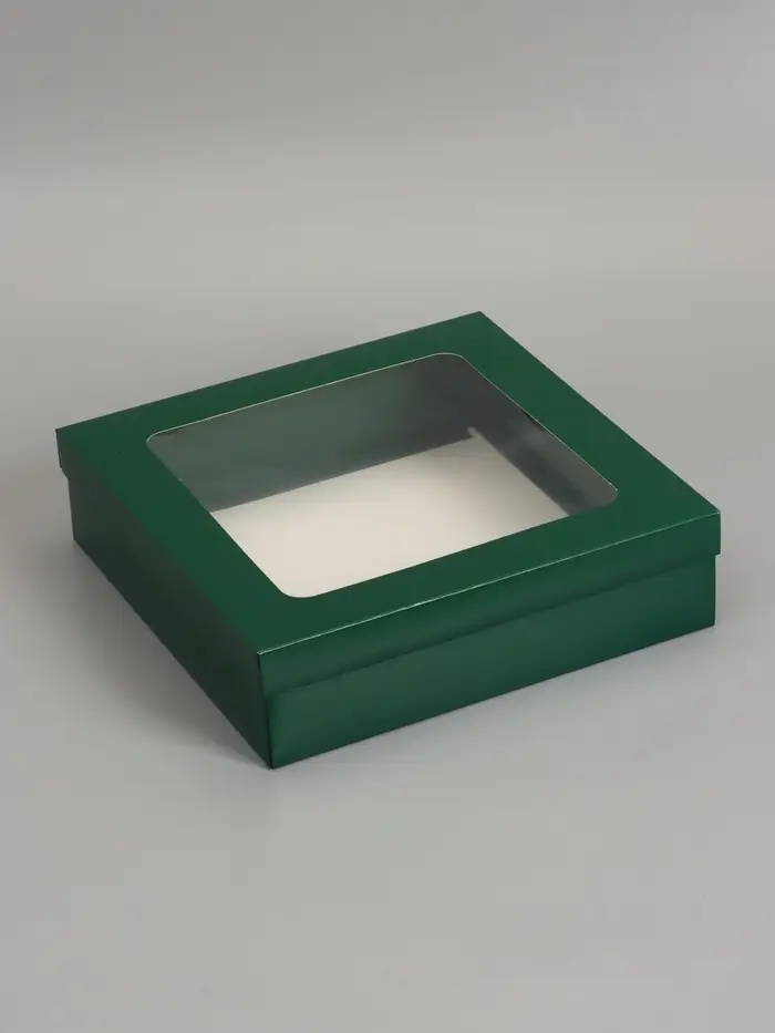 Коробка складная, крышка-дно, армейский зелёный, с окном 30 х 30 х 8 см
