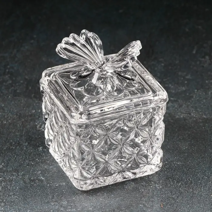Сахарница стеклянная «Бабочка», 170 мл, 8×10,5 см, с крышкой