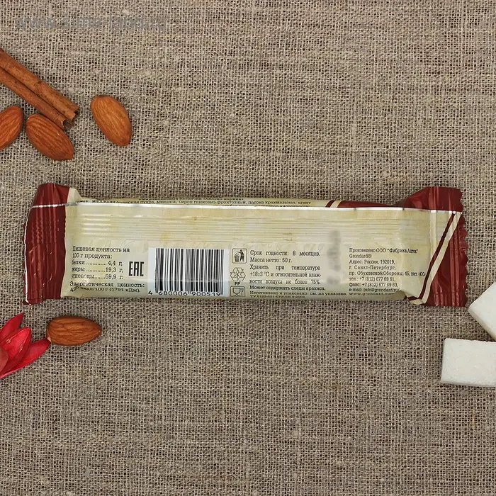 Марципановый батончик с нотками корицы и кусочками яблока сделает любой прохладный и дождливый день солнечным! Напоминает о свежевыпеченном штруделе и ароматном глинтвейне.