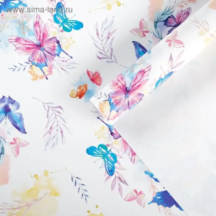 Бумага упаковочная глянцевая «Акварельные бабочки», 70 х 100 см