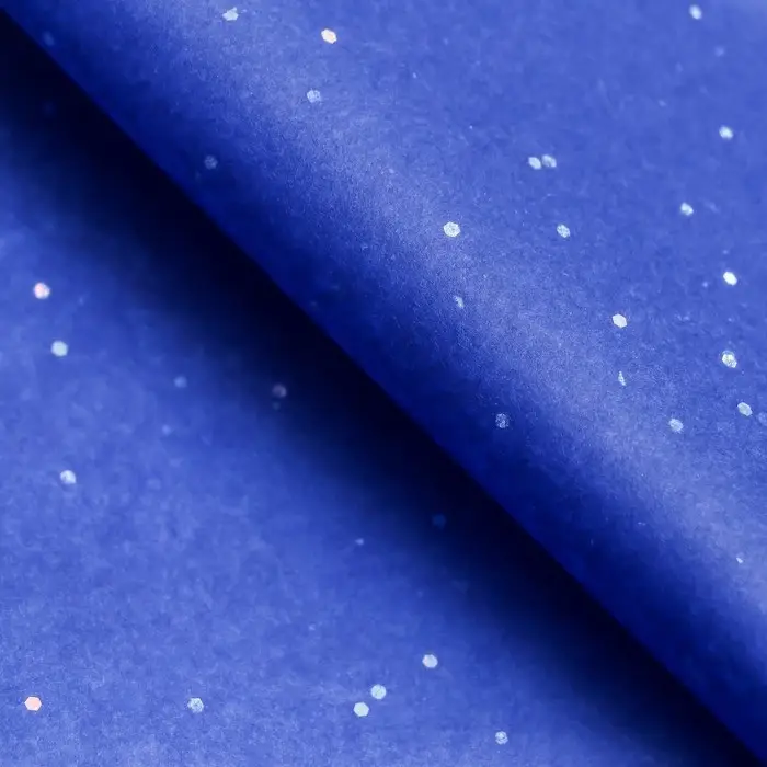 Синяя бумага тишью с конфетти 50×66 см — идеальное решение для создания стильной праздничной упаковки. Насыщенный синий цвет с тонкими крапинками напоминает о морских просторах и летних деньках.